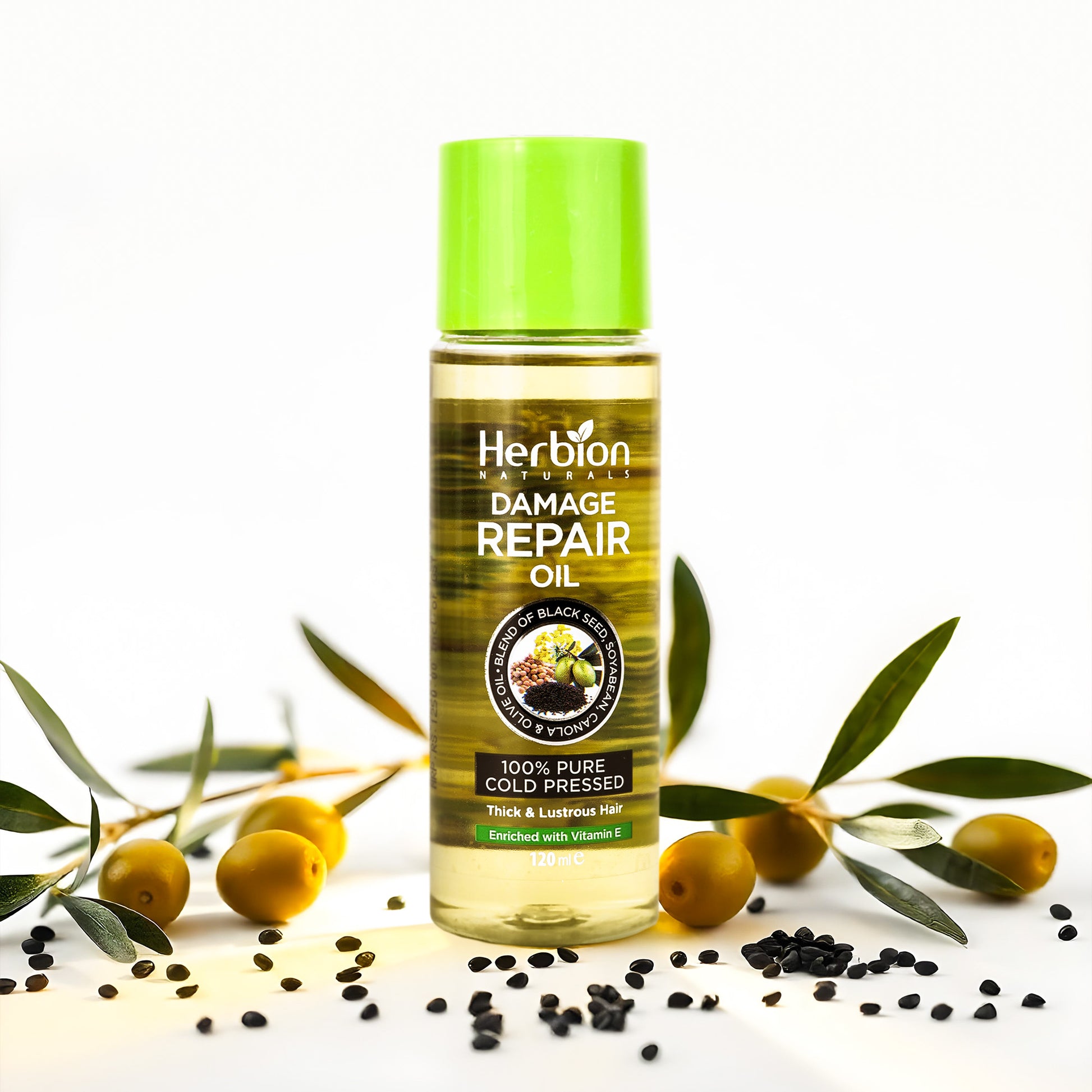 Herbion Naturals Damage Repair Hair Oil 120ml - Pure Cold Pressed Oil - Enriched with Vitamin E