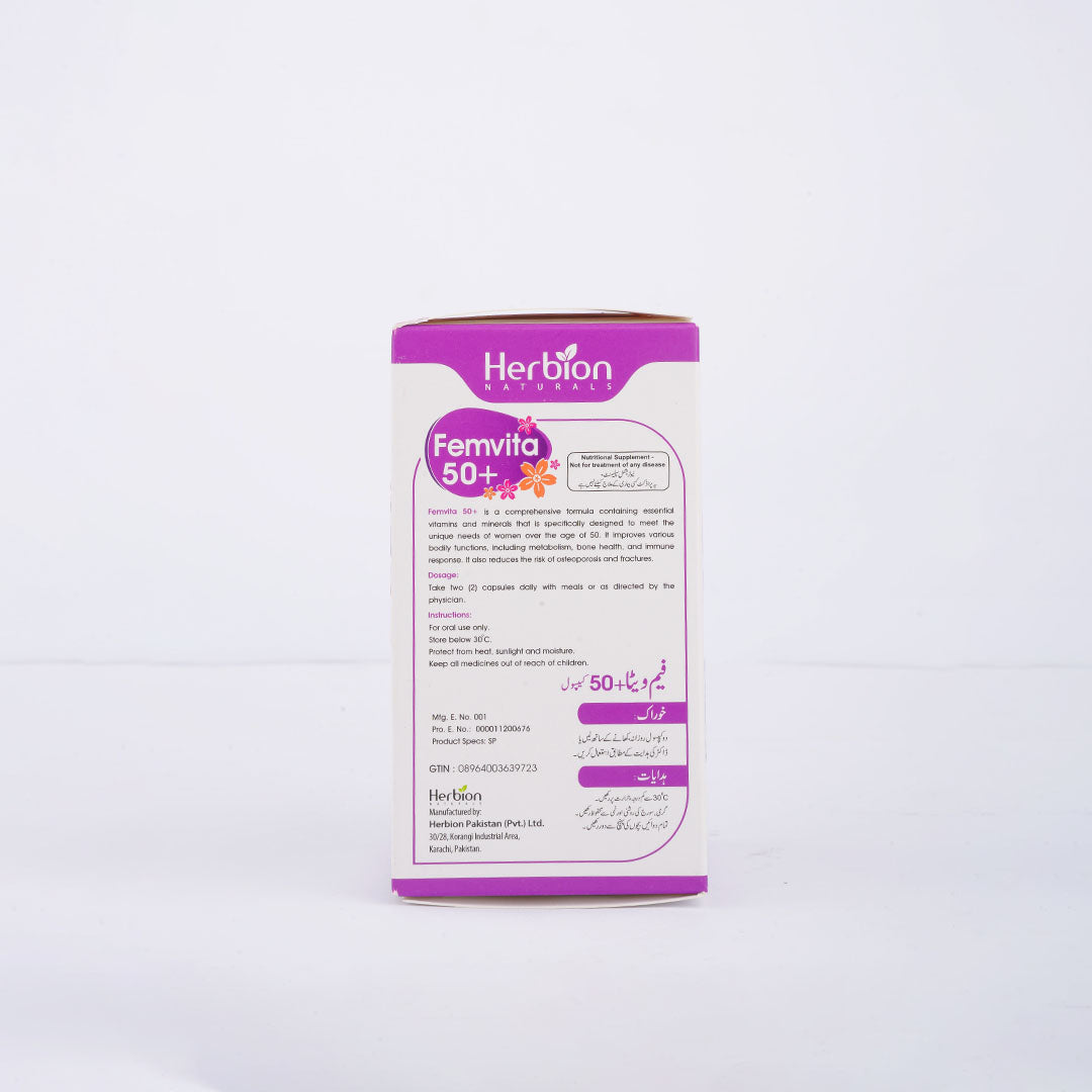 Femvita 50+ is a comprehensive nutritional supplement specially formulated for women aged 50 and above. Designed to support healthy aging, vitality, and overall well-being, it helps meet the changing nutritional needs of women during midlife and beyond.