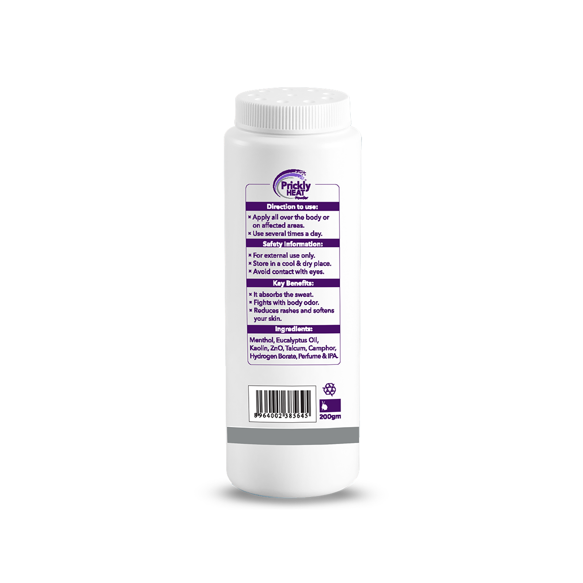 Herbion Prickly Heat Powder is specially formulated to relieve prickly heat and other skin irritations caused by excessive sweating. Its unique blend of natural ingredients not only cools and soothes the skin but also helps maintain overall skin health. Perfect for daily use, it ensures you stay comfortable and fresh throughout the day.
