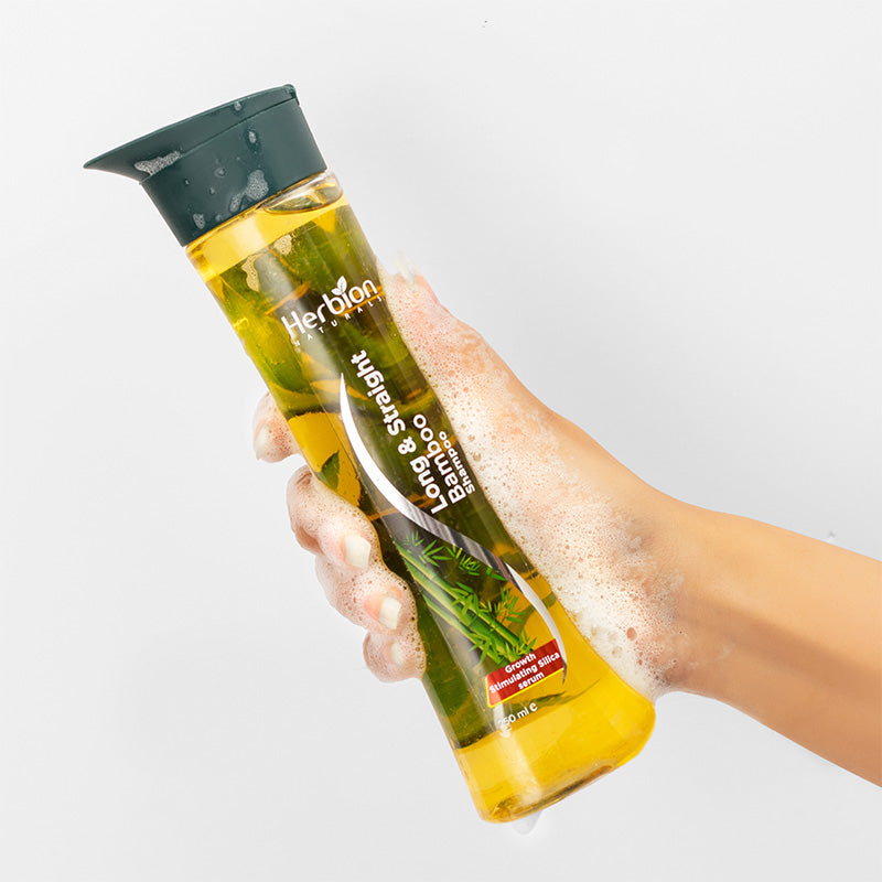 With its unique, anti-frizz formula, Herbion Natural Bamboo Shampoo keeps your hair smooth, shiny and manageable. It improves and controls dry, coarse and unruly hair. Natural Bamboo extract increases flexibility and resilience eliminating dirt, impurities and pollutants from hair and scalp to assist in stimulating circulation, hence promoting hair growth.