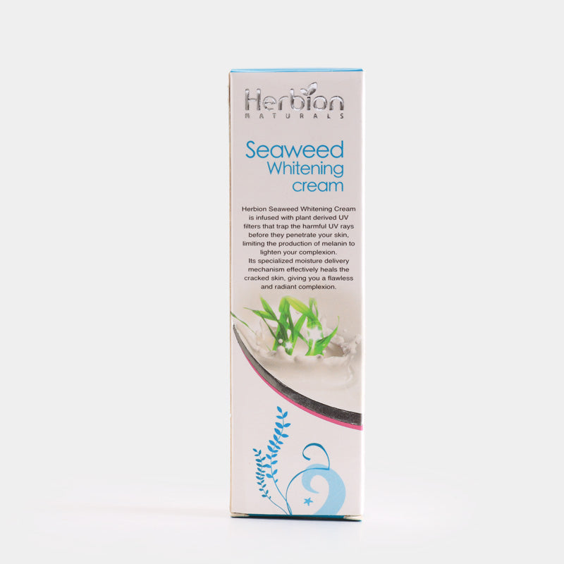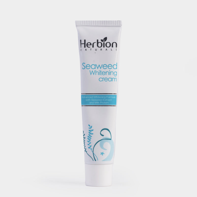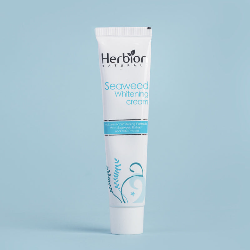 Herbion Naturals Seaweed Skin Whitening Cream is an amalgamation of natural brightening agents that renew flawless glowing skin. The presence of sea algae detoxifies the skin and eliminates discoloration that causes unbalanced skin tone. The combination of milk protein and licorice inhibits melanin production while nourishing the skin to provide a beautiful glow.